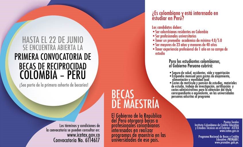#Becas para maestrías gracias al Programa de Reciprocidad Colombia-Perú. Consulte en: http://www.icetex.gov.co pic.twitter.com/mV5wmx2Cd7
