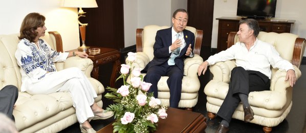 Presidente Santos y Canciller Holguín se reunieron con el Secretario General de las Naciones Unidas, Ban Ki-Moonpic.twitter.com/m09XD5sxdf
