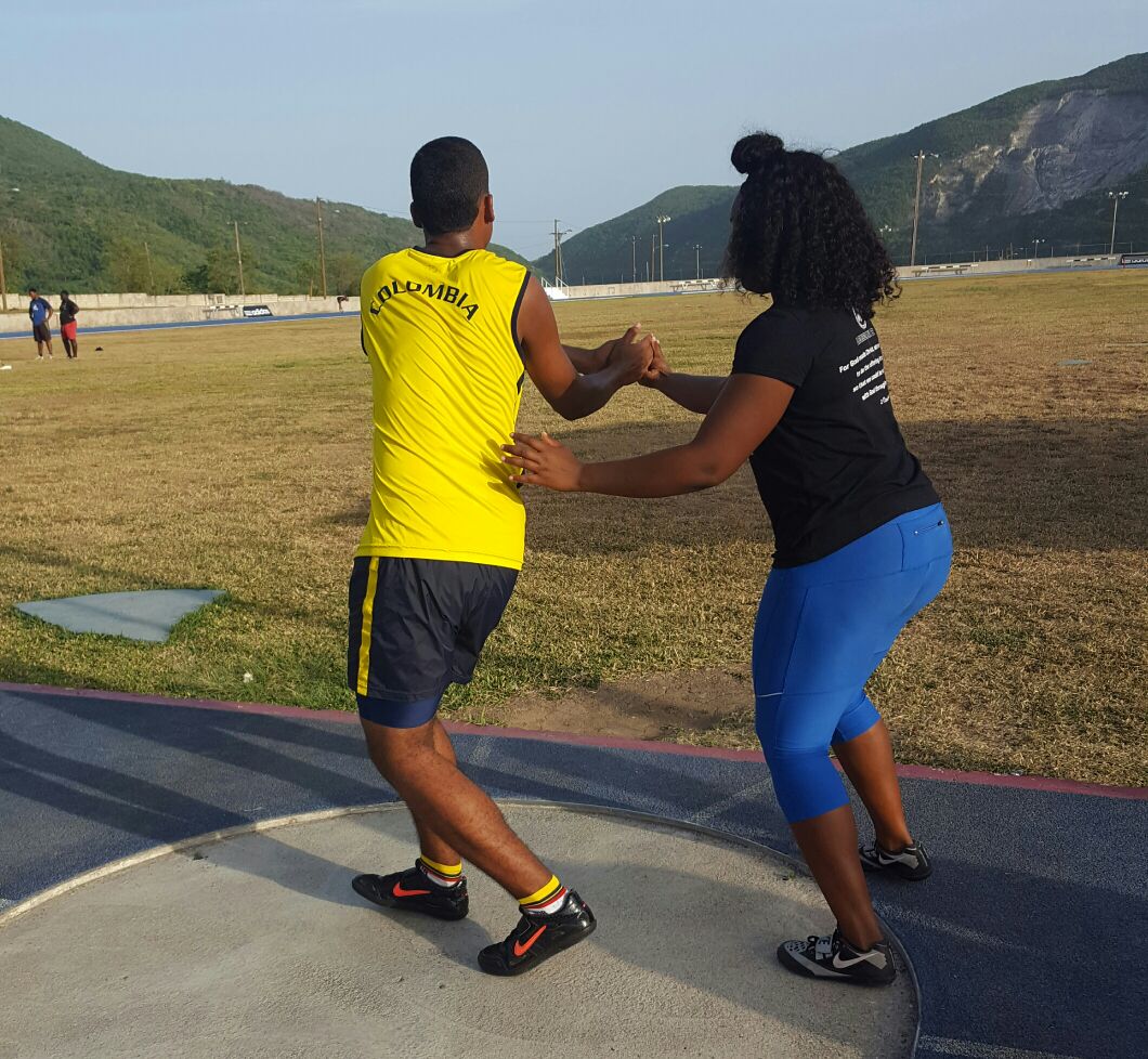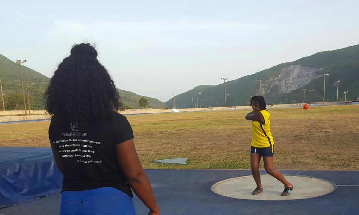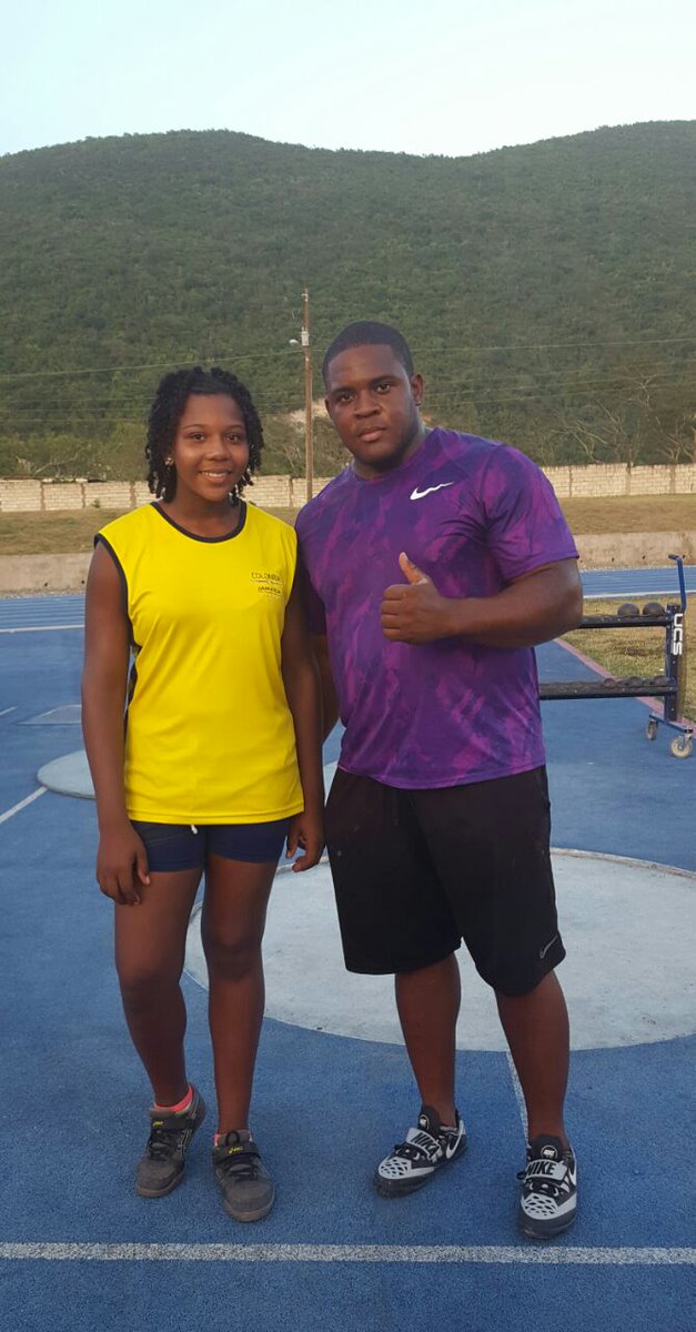 Jóvenes lanzadores mejoran técnicas y conocen al campeón mundial en lanzamiento de bala O'Dayne Richards #Jamaicapic.twitter.com/OpQSnM75FQ