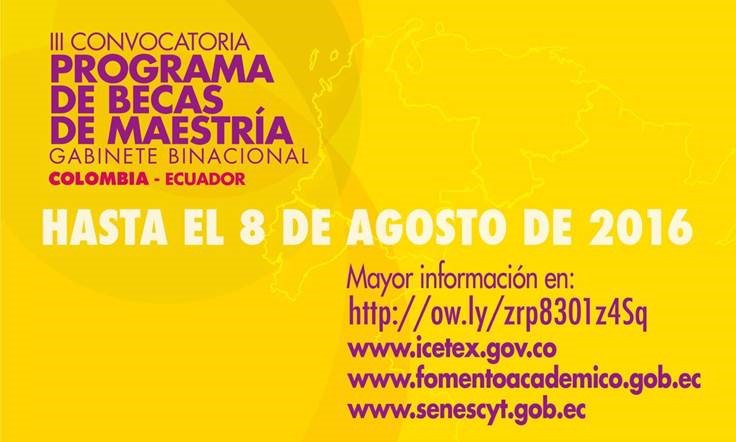 Programa de becas del Gabinete Presidencial Colombia Ecuador @ICETEX @Becas_SENESCYT http://ow.ly/zrp8301z4Sq pic.twitter.com/zgxB6Tanh5