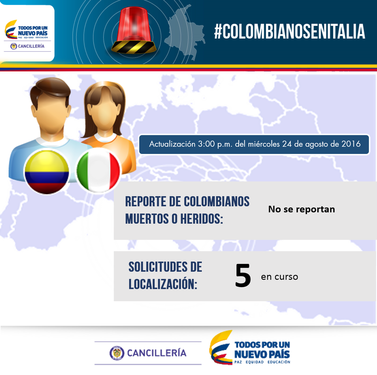Seguimos atentos a los #ColombianosEnItaliapic.twitter.com/tGKMaWwCAT