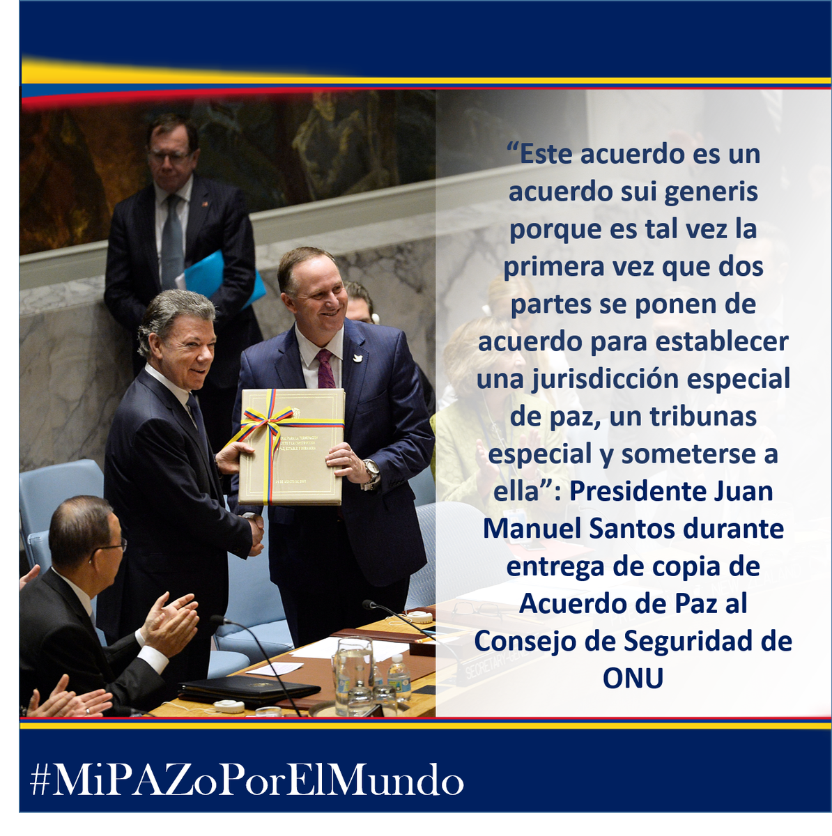 .@JuanmanSantos durante entrega de copia del #AcuerdoDePaz al Consejo de Seguridad de la ONU #MiPAZoPorElMundopic.twitter.com/blGH4YuWL5