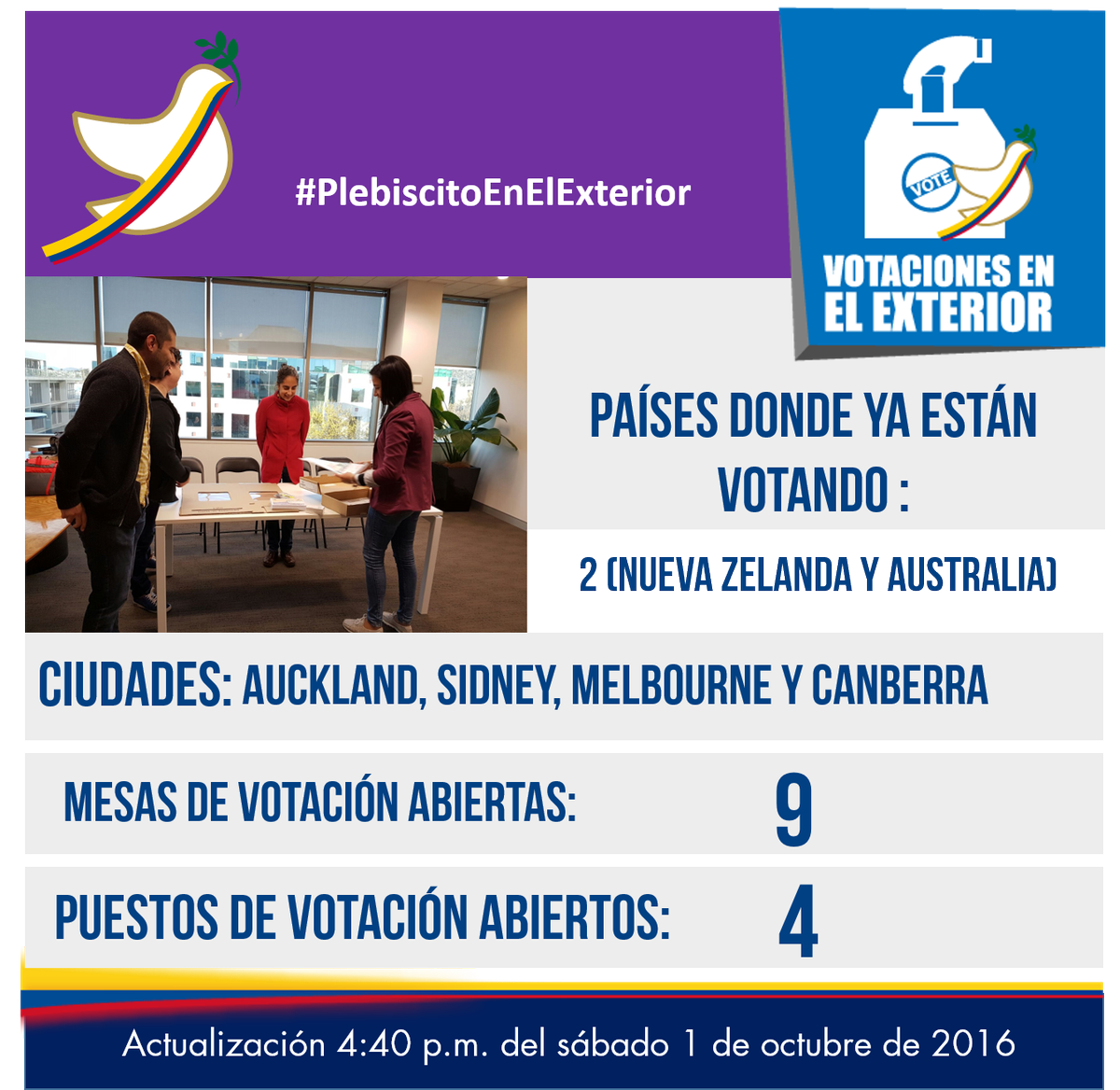 [ACTUALIZACIÓN 4:40PM] Jornada electoral #PlebiscitoEnElExteriorpic.twitter.com/D2a9sBCFEs