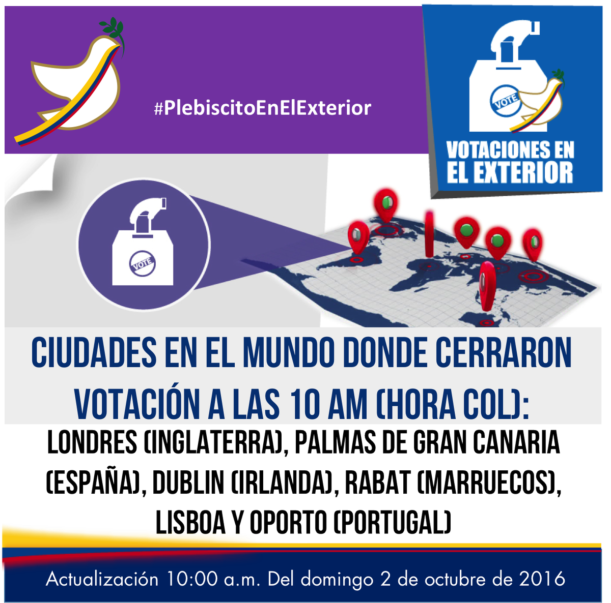 A las 10:00 am (hora COL) cerraron varios puestos de votación en el mundo #PlebiscitoEnElExteriorpic.twitter.com/ABfJaMolN7