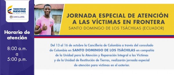 Acércate a la Jornada Especial de Atención a las Víctimas en Santo Domingo de los Tsáchilas. http://bit.ly/2eeW2PN pic.twitter.com/GZEkiVPfnu