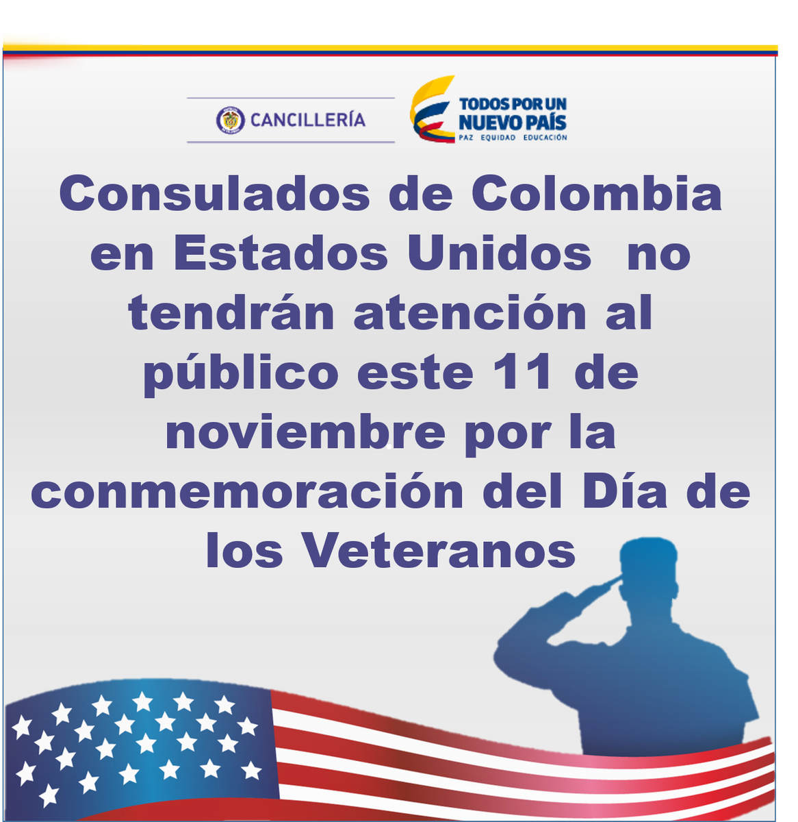 Por conmemoración del Día de los Veteranos, Consulados en EE.UU no tendrán atención al público este 11 de nov.pic.twitter.com/hYHjJibIh4