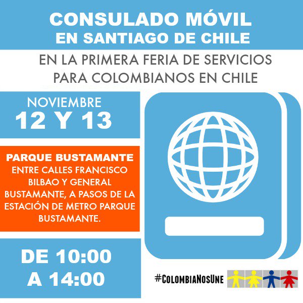La 1era Feria de Servicios para #ColombianosEnChile también tiene Consulado Móvil. http://bit.ly/2fctU15 pic.twitter.com/PTxpkzYMuJ