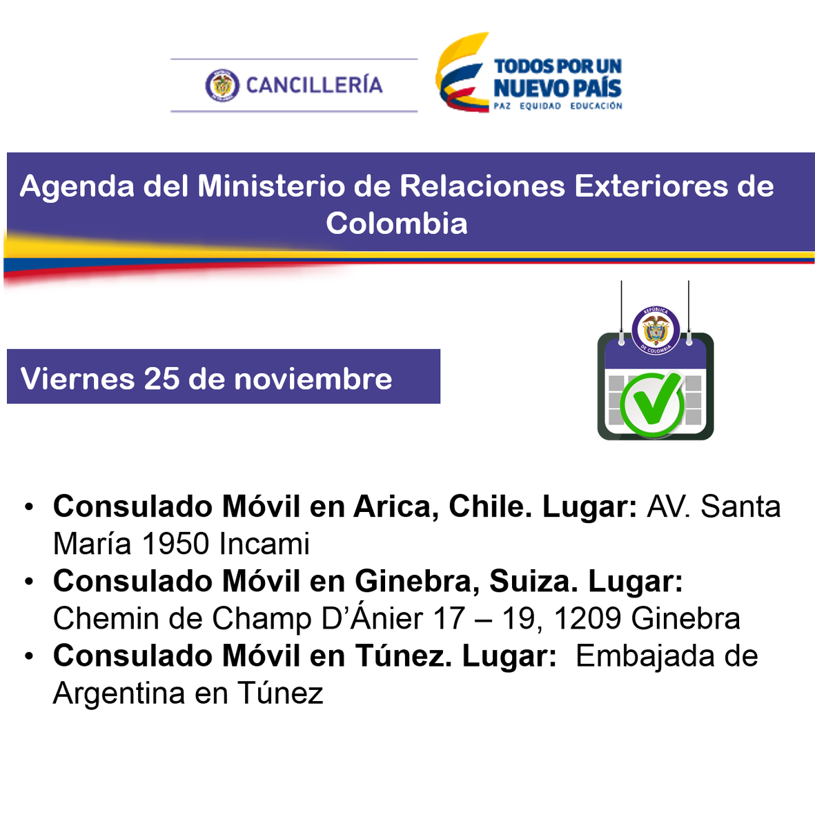 Conozca la agenda del Ministerio de Relaciones Exteriores para este 25 de noviembrepic.twitter.com/gedaFdt4lp
