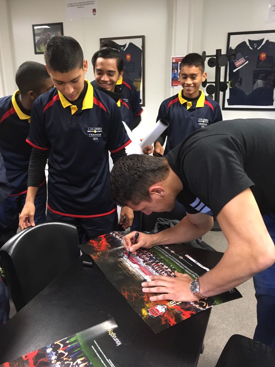 Participantes de #DiplomaciaDeportiva de la @CancilleriaCol en encuentro con @andreszafra4 @LeLOURugby #lyonpic.twitter.com/OPbk6Vlpqr