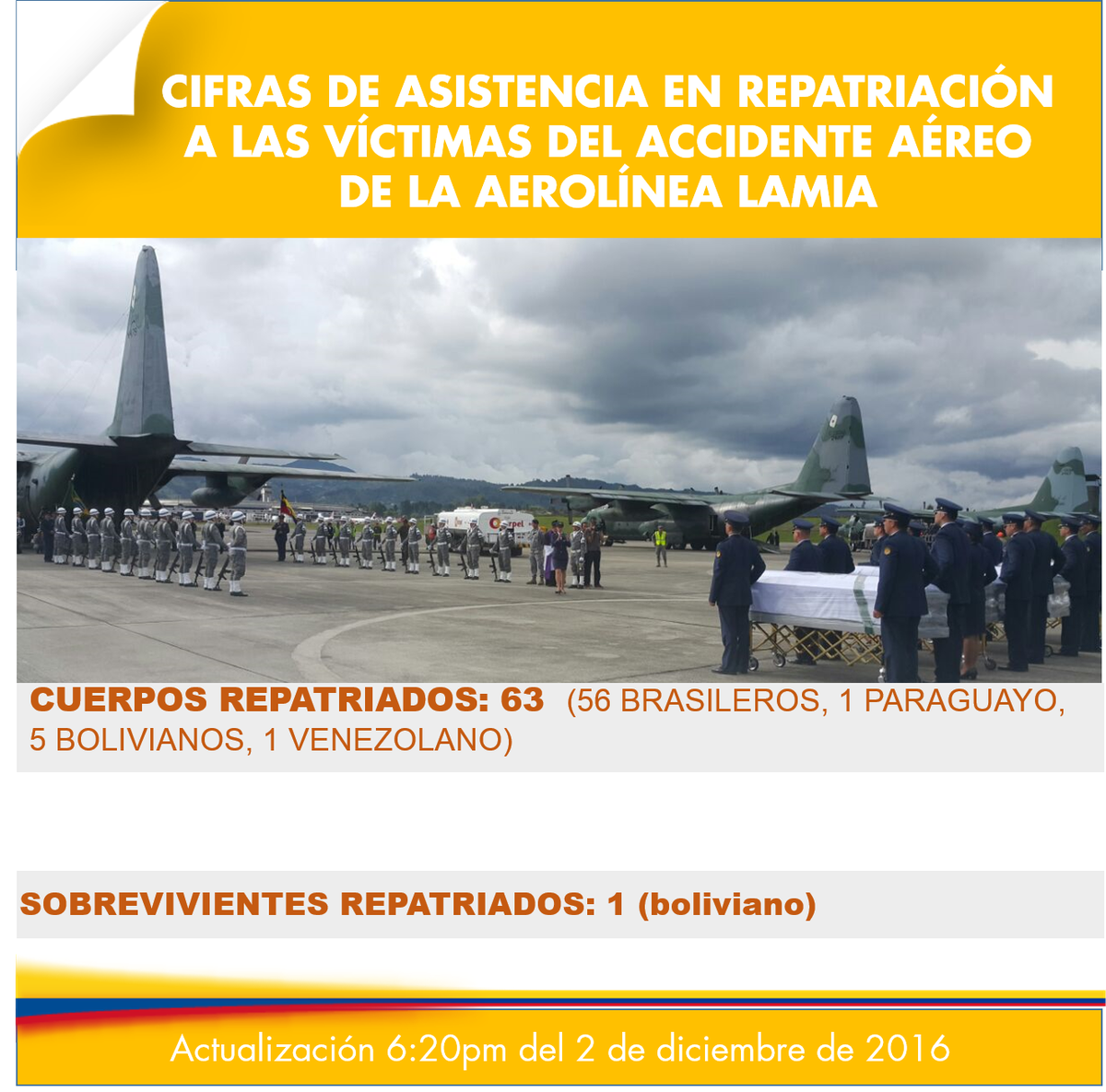 [Asistencias en repatriación a las víctimas del accidente del avión de la aerolínea LaMia, actualización 6:20pm del 2 de diciembre de 2016]pic.twitter.com/KiwMdVnTAe