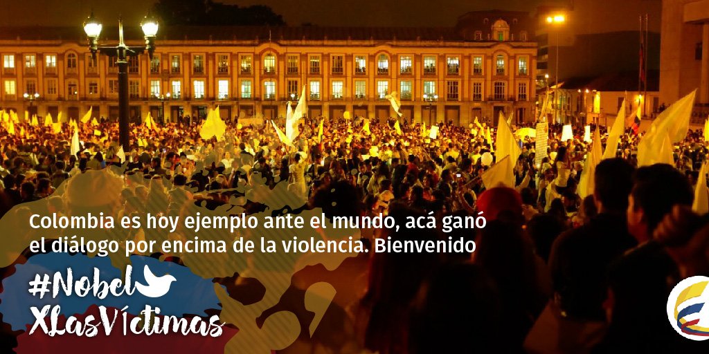 Adiós a la guerra, bienvenida la paz. ¡Es hora de recibir el #NobelXLasVíctimas!pic.twitter.com/Hqcm9dEHLg
