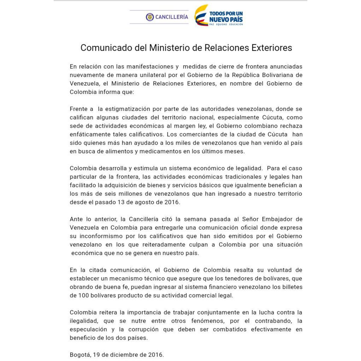 @CancilleriaCol lo llama "OPORTUNUDADES" je! -