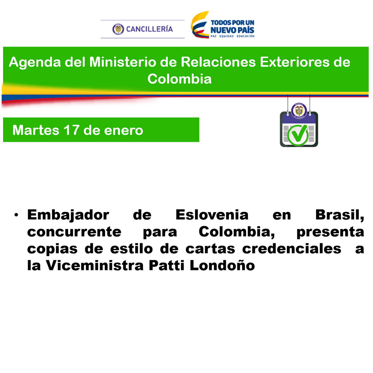 Conozca la agenda del Ministerio de Relaciones Exteriores para este 17 de eneropic.twitter.com/mef79hOFg5