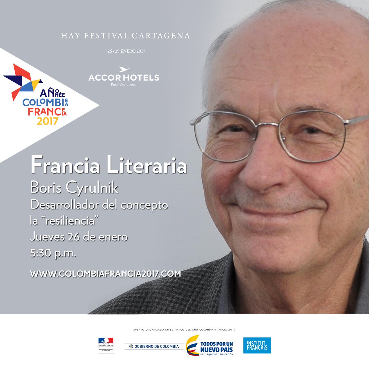 El francés Boris Cyrulnik, desarrollador el concepto de «resiliencia», compartirá experiencias en el @hayfestival_esp #ColombiaFrancia2017pic.twitter.com/7POvsGs8zi