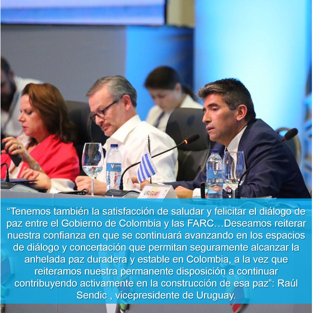 "Tenemos la satisfacción de saludar y felicitar el diálogo de paz entre el Gobierno de Colombia y las FARC": Vicepresidente de Uruguaypic.twitter.com/85NgxptOZY