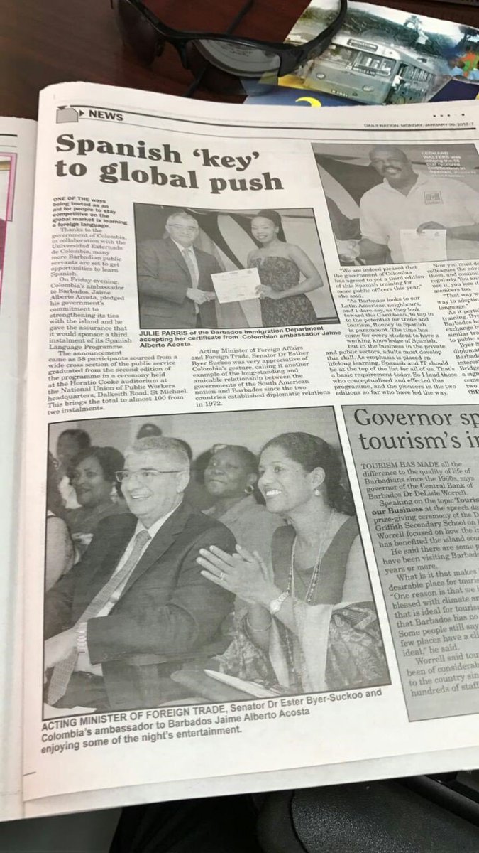 Diario NationNews destaca labor del Gob de COL para enseñar español a funcionarios públicos de Barbados @UExternado https://goo.gl/dCz32p pic.twitter.com/3yl86n70SW