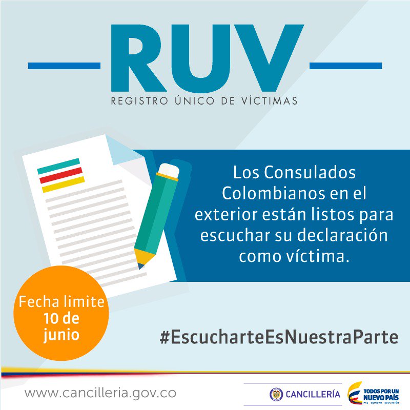 ¿Fue víctima del conflicto armado y se encuentra en el exterior? queremos escuchar su declaración como víctima #EscucharteEsNuestraPartepic.twitter.com/rys8LmMRRJ