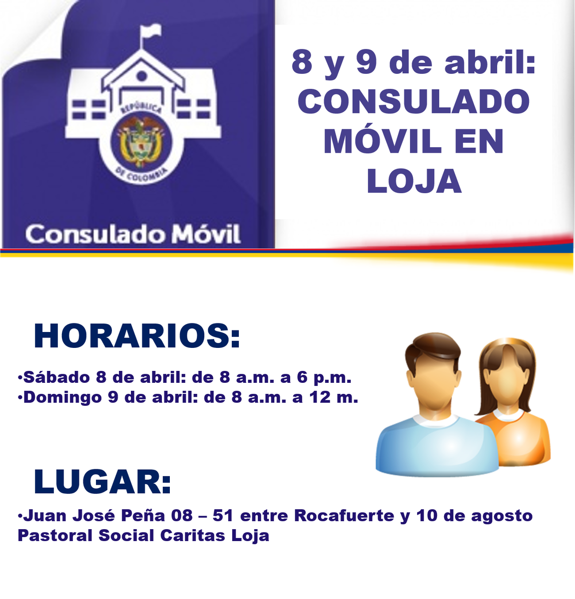 Consulado móvil para #ColombianosEnLoja este 8 y 9 de abrilpic.twitter.com/9jxxXGFu3A