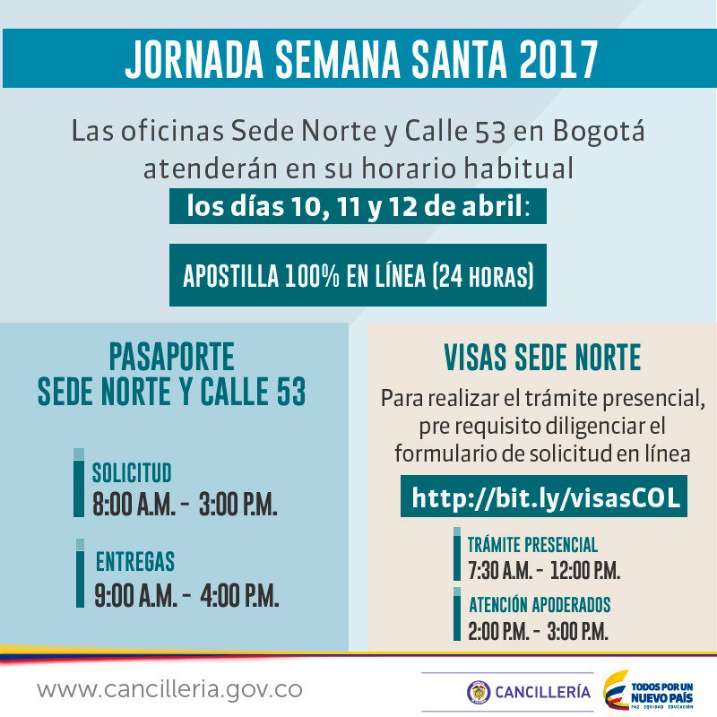 @CancilleriaCol quería preguntar si atenderán en horario normal la próxima semana