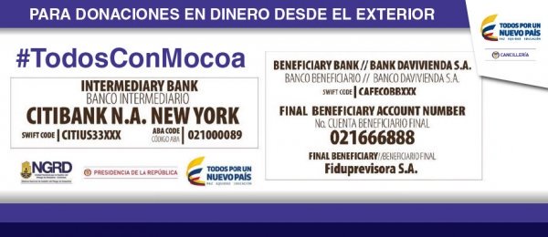 Gracias por ayudar. Le compartimos la información para donaciones desde el exterior #TodosconMocoapic.twitter.com/dMphQcScay