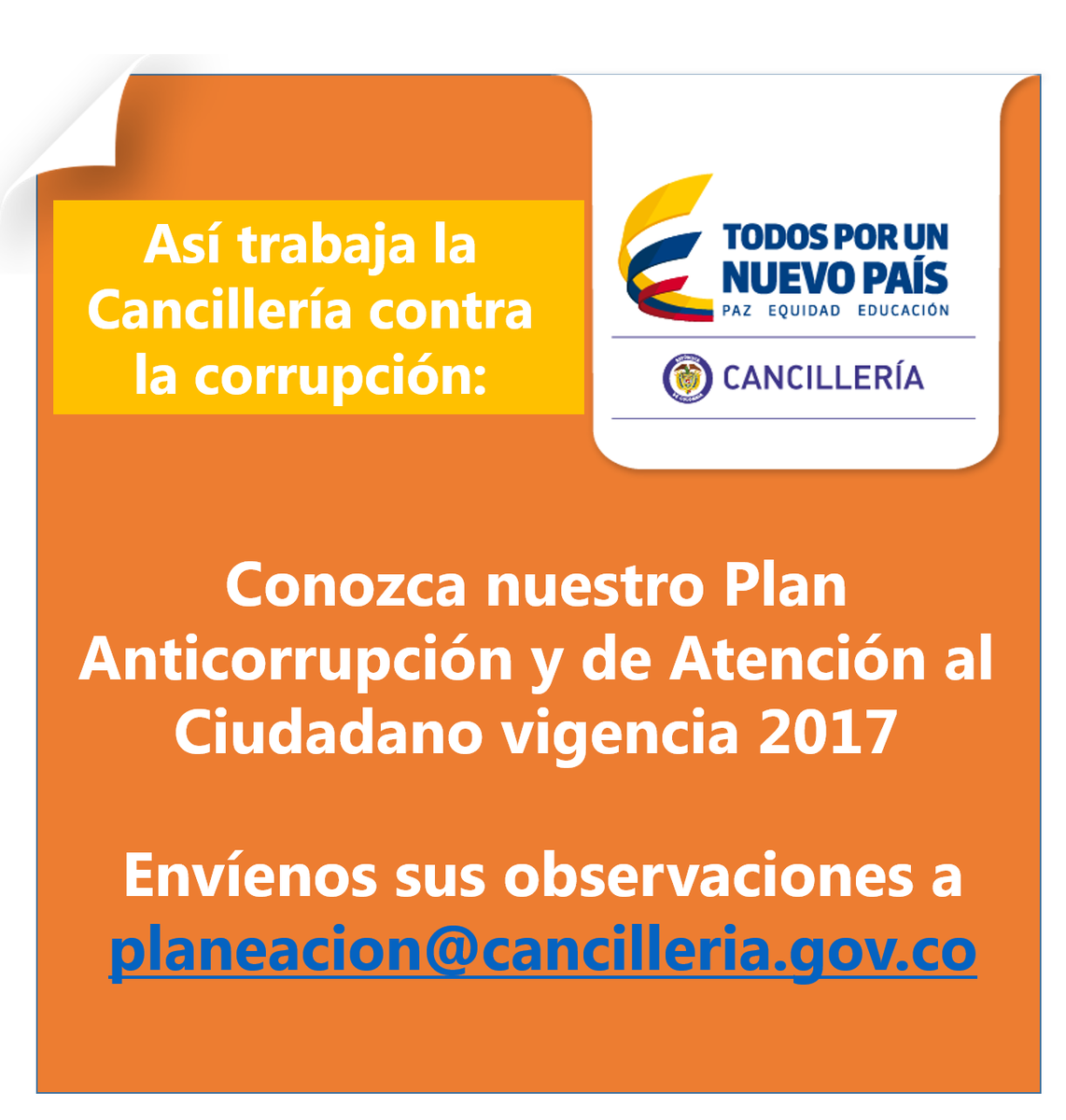 Conozca nuestro Plan Anticorrupción y Atención al Ciudadano 2017 http://www.cancilleria.gov.co/plan-anticorrupcion-y-atencion-al-ciudadano …pic.twitter.com/21qapswJtG