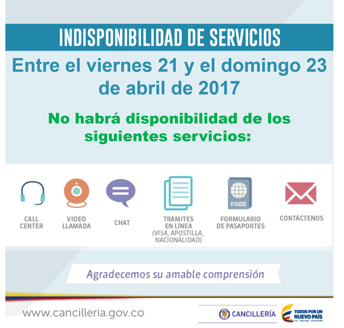 Hoy, 21 de abril: Indisponibilidad de algunos servicios en línea desde las 7:00pm (hora colombiana)pic.twitter.com/3QqX9HsYS4