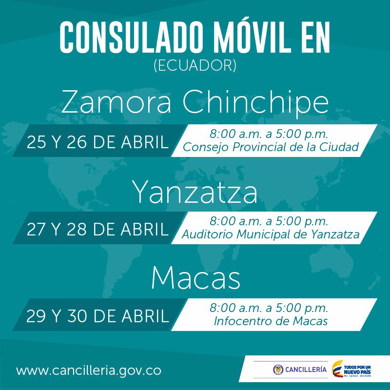 #ColombianosEnEcuador tengan en cuenta la siguiente información: Consulado Móvil para facilitar trámites consulares #CancilleriaParaTodospic.twitter.com/psy3wbfZXE