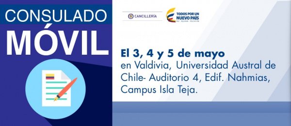 Consulado Móvil en Valdivia del 3 al 5 de mayo de 2017 http://santiagodechile.consulado.gov.co/newsroom/news/2017-04-24/13803 …pic.twitter.com/I9pJBuWBz4