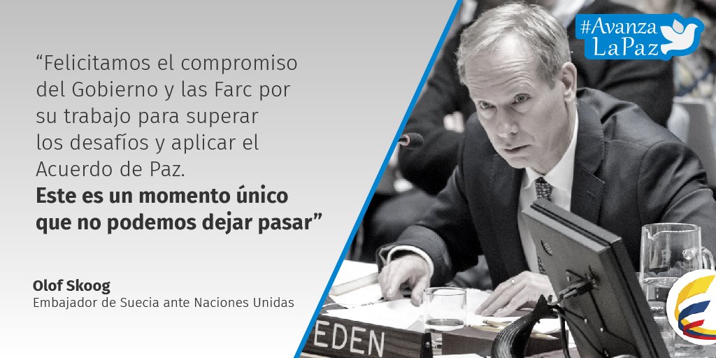 Embajador de Suecia ante @ONU_es insiste en que la paz de Colombia es una oportunidad que no se puede dejar pasar #AvanzaLaPazpic.twitter.com/nFhqAuhABJ