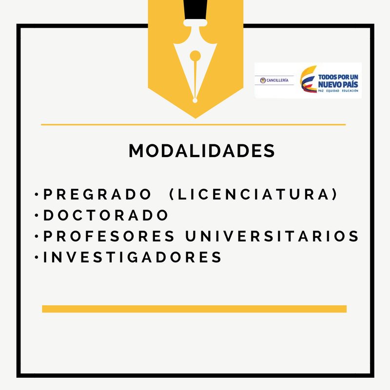 Colombia ofrece a peruanos, mexicanos y chilenos becas de la @A_delPacifico en las siguientes modalidades: https://alianzapacifico.net/wp-content/uploads/2017/04/Convocatoria-Extraordinaria-Colombia.pdf …pic.twitter.com/OV4gRp6awR