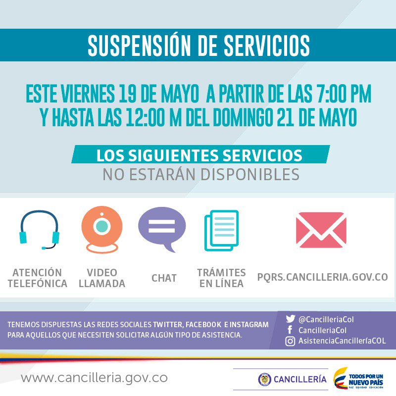Sr usuario tenga en cuenta las siguientes indisponibilidades para este fin de semana #CancilleriaParaTodospic.twitter.com/YtrGfL5uj2