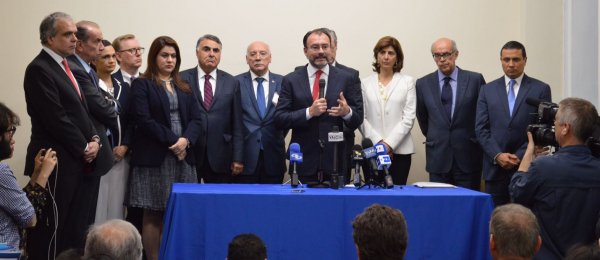 Canciller de México, Luis Videgaray habló en nombre de las 14 naciones que buscan la reconciliación en Venezuela. http://www.cancilleria.gov.co/newsroom/news/14-naciones-estamos-aqui-representadas-estamos-listos-diplomacia-lograr-establezca …pic.twitter.com/XFLBeC4dAa