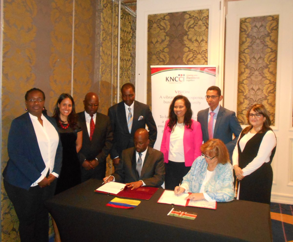 Embajada de Colombia en Kenia promueve firma MoU entre @camaracomerbog y @kncci #diplomaciaeconómicapic.twitter.com/Poy8JbeRop