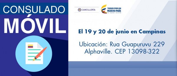 Cancillería informa que Consulado de Colombia en Sao Paulo realizará #ConsuladoMóvil en Campinas el 19 y 20 de junio
