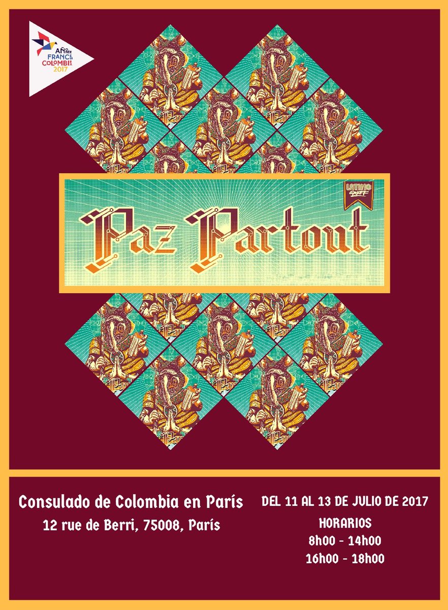 Consulado en París invita a la inauguración de la exposición “Paz Partout”, evento del #AñoColombiaFrancia2017 http://www.anneefrancecolombie.com/content/paz-partout …pic.twitter.com/iPTiY6v8Df