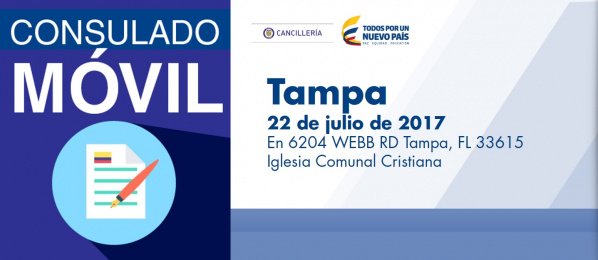 Este 22 de julio habrá jornada de Consulado Móvil para que #ColombianosEnTampa realicen trámites consulares. http://orlando.consulado.gov.co/newsroom/news/2017-06-02/13971 …pic.twitter.com/1gZH9qcTRo