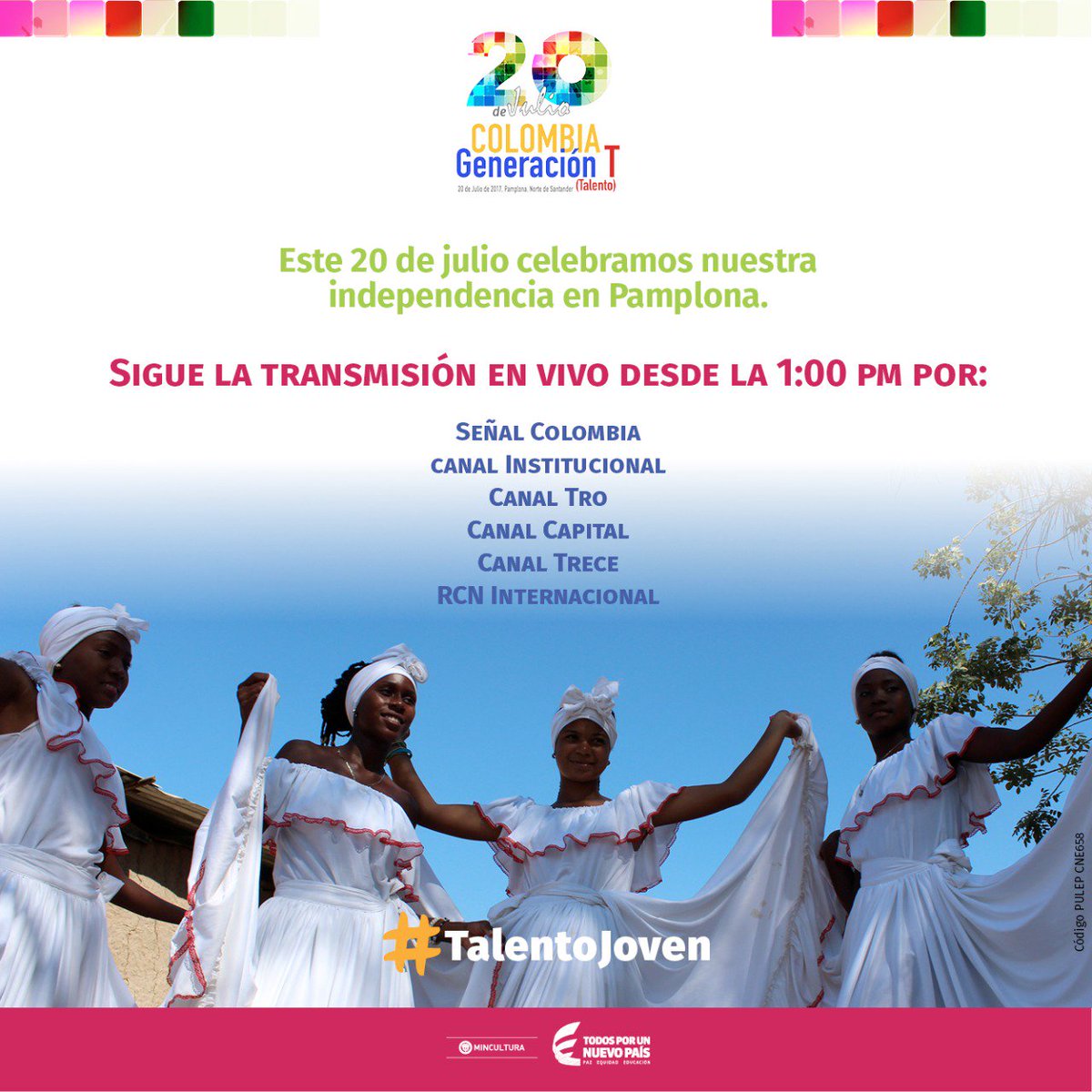 ¡Desde su ciudad celebre el #20DeJulio! Sintonice el canal de tv de su región y no deje de ver lo mejor del #TalentoJoven del país.pic.twitter.com/EvvNuxHWrn
