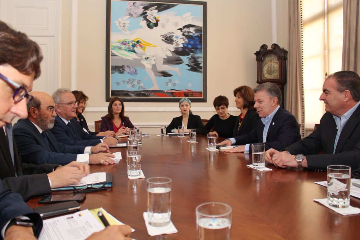 En reunión privada, Pdte. Santos, Canciller Holguín, Comisario @MimicaEU y Director  @grazianodasilva dialogan sobre Acuerdo de paz.pic.twitter.com/CAd988i8sj