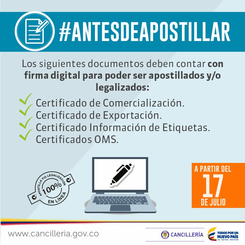 Desde el 17 de julio es necesario que documentos expedidos por INVIMA cuenten con firma digital para poder ser apostillados y/o legalizadospic.twitter.com/JPw5fgypoE