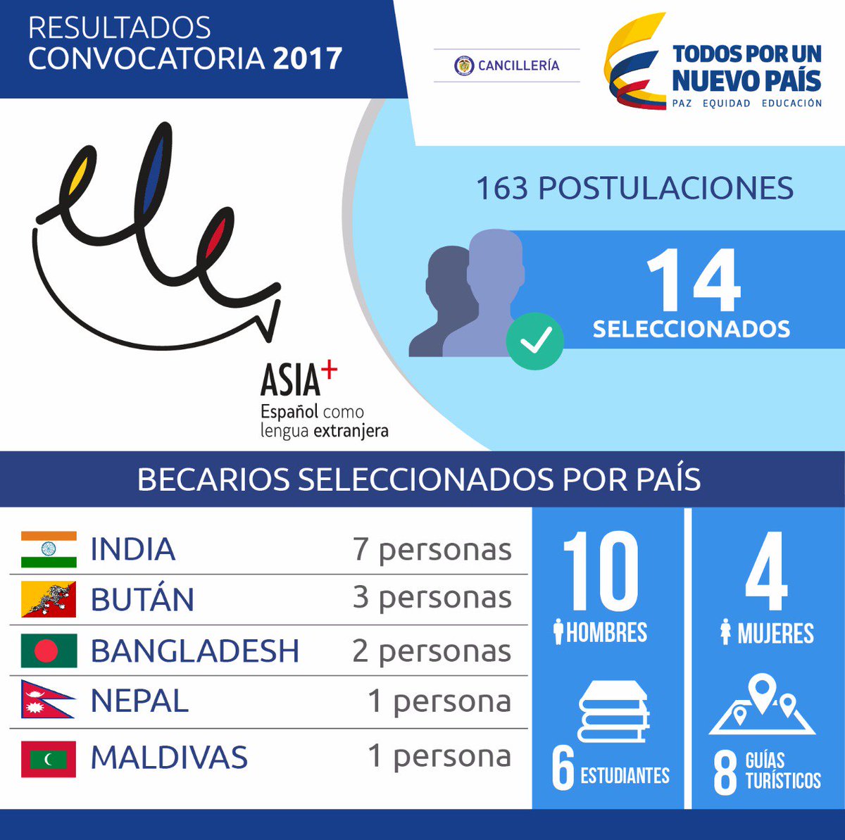 Por 1era vez se hace convocatoria de ELE Asia +, de 163 postulados fueron seleccionados 14, quienes aprenderán español en COL #SoyELEAsiapic.twitter.com/LPvYhKfSOC