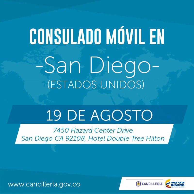 El 19 de agosto realizará Consulado Móvil en la ciudad de San Diego de 8:30 a.m. a 5:00 p.m.pic.twitter.com/HYUtDwsp2g