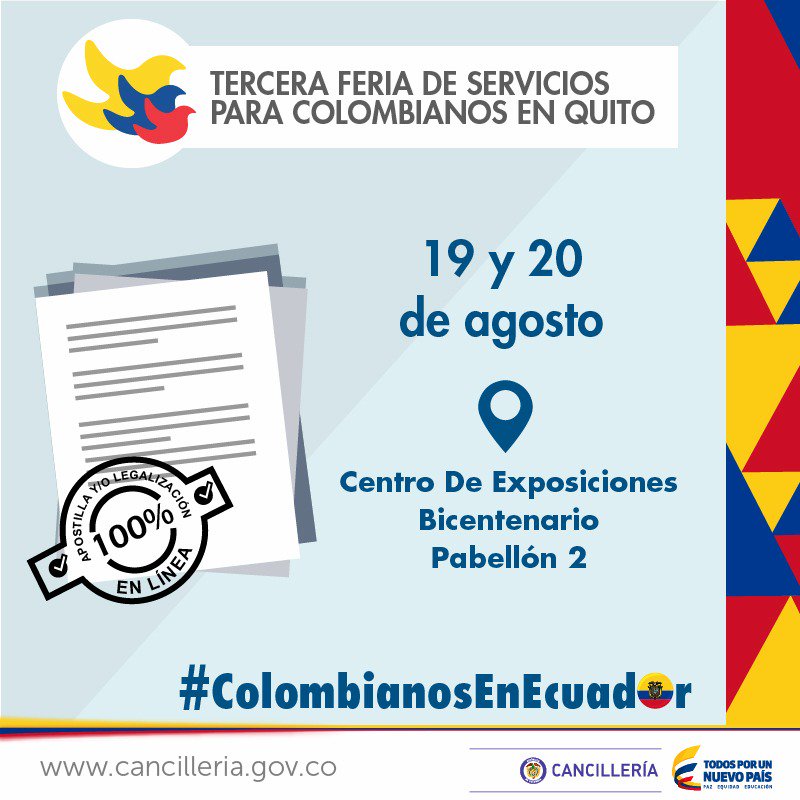 Infórmese sobre cómo realizar el trámite de su apostilla y/o legalización en la feria de servicios este 19 y 20 de agosto en #Quitopic.twitter.com/iwqvrOj2iP
