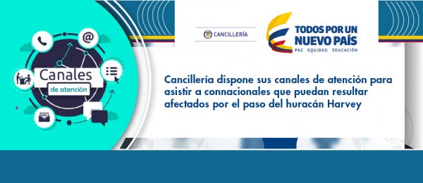 Cancillería dispone canales de atención para asistir a colombianos que puedan resultar afectados por huracán Harvey http://www.cancilleria.gov.co/newsroom/news/cancilleria-dispone-canales-atencion-asistir-connacionales-puedan-resultar-afectados …pic.twitter.com/MVvueEjTeR