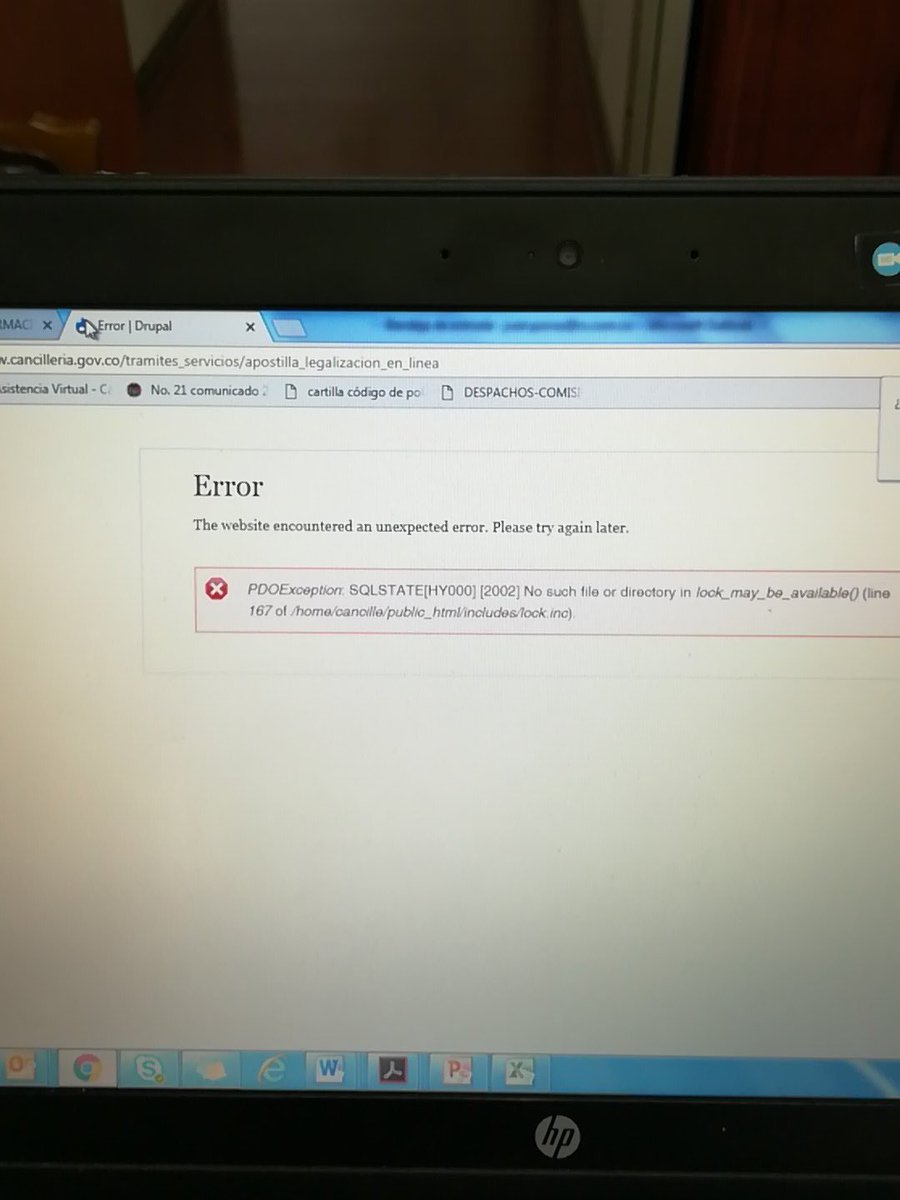 Sr usuario la página web de Cancillería presenta fallas, trabajamos para poder solucionar el inconveniente. Agradecemos su comprensión.