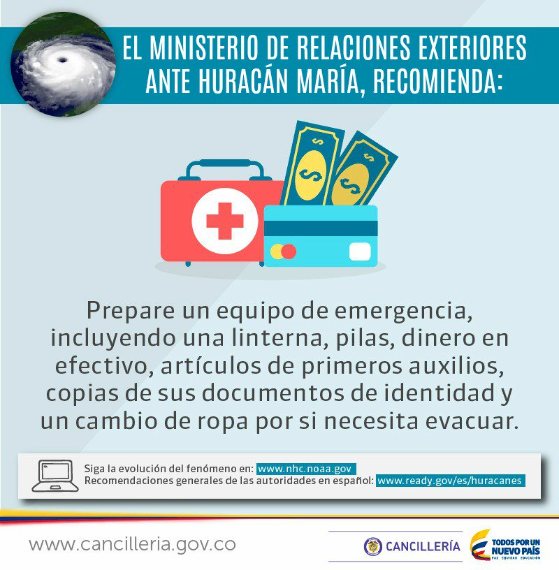 #ColombianosEnElExterior ante el paso de #HuracánMaría, tenga en cuenta estas recomendaciones:pic.twitter.com/DULZUcyhYZ
