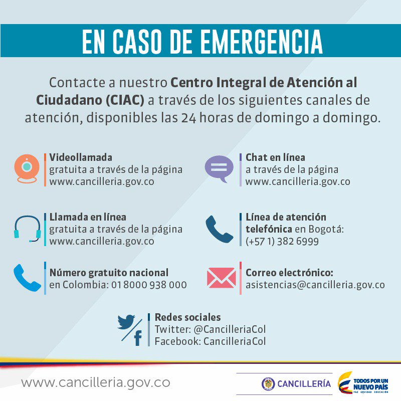 55 28453988 Línea de emergencia Consulado de Colombia en ciudad de México