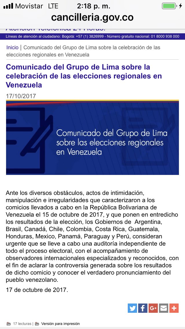 Comunicado del Grupo de Lima sobre la celebración de las elecciones regionales en Venezuela http://cancilleria.gov.co/newsroom/publi …pic.twitter.com/ElfyWtasO1