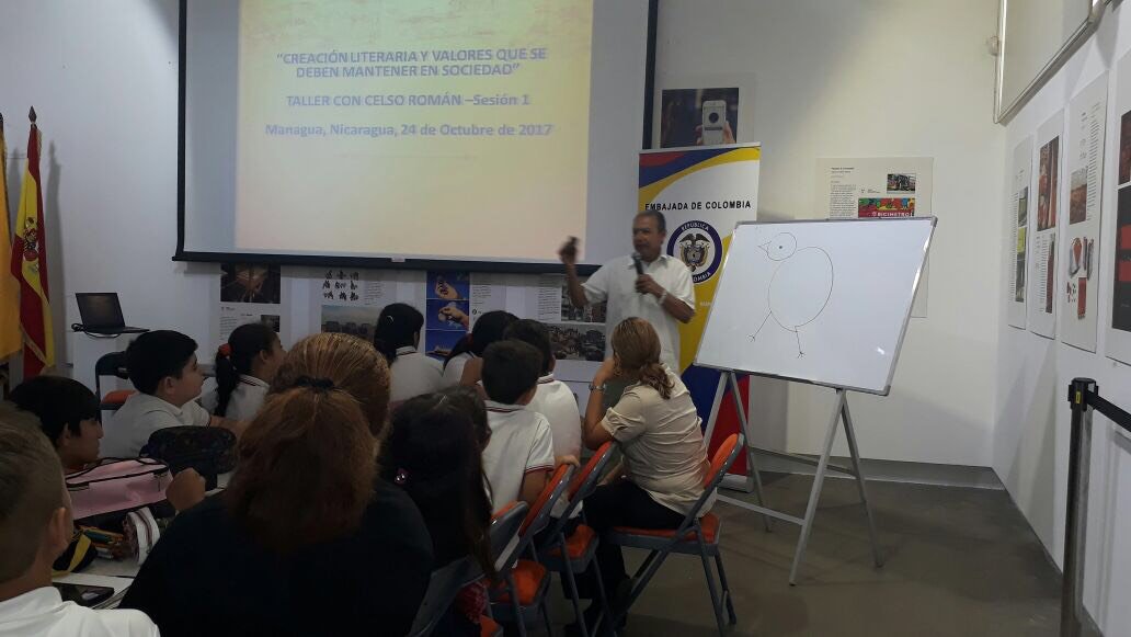 Embajador de #CO en Nicaragua inaugura VIII Taller de Cuentos para Niños y Jóvenes Escritores Nicaragüenses junto a escritor @RomanCelsopic.twitter.com/pe1SmVKoEl