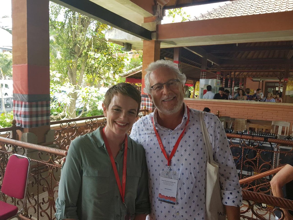 Héctor Ábad Faciolince @hectorabadf habló acerca de su obra durante panel con periodista australiana Sarah Kanowski en @ubudwritersfestpic.twitter.com/78FVq1aIFN