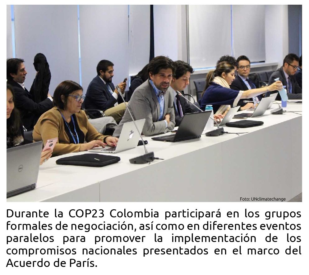 Delegación de Col en #COP23 integrada por @CancilleriaCol, @MinAmbienteCo, @DNP_Colombia, @IDEAMColombia e @invemarcolombiapic.twitter.com/Egi58zMJ6Q